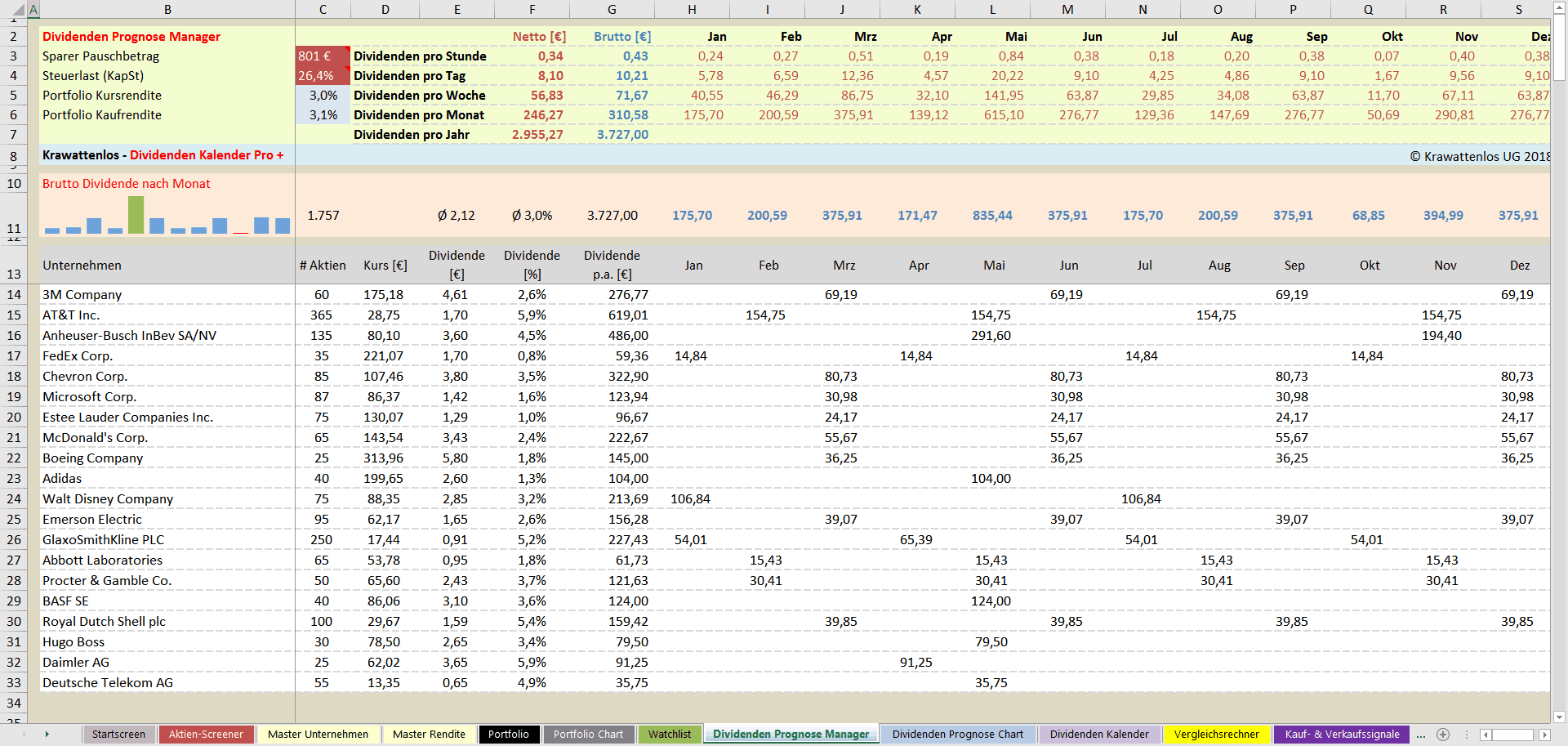 Dividenden Kalender Pro + – professioneller Aktien-Screener und Portfolio Manager in einem Tool vereint!